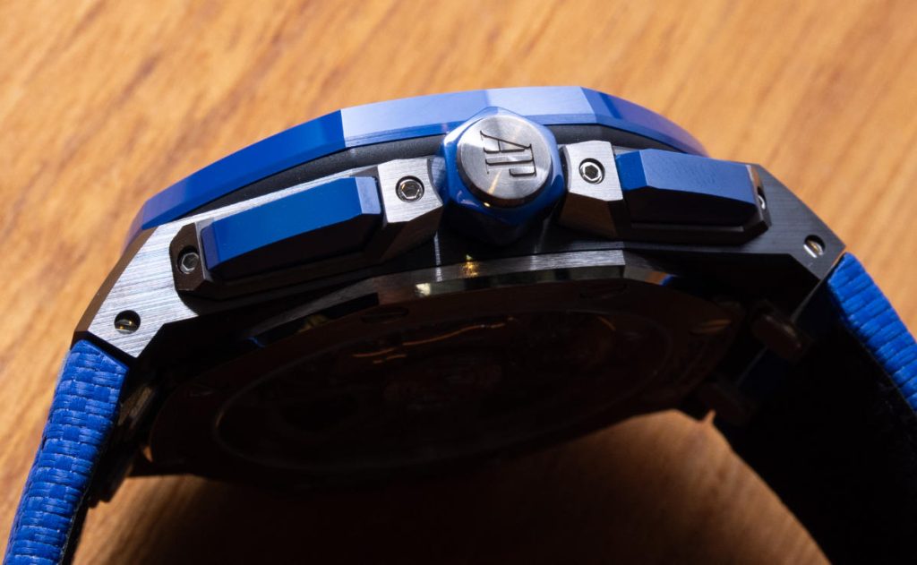 The overall wrist comfort of the 43mm Royal Oak Offshore Selfwind Chronograph is excellent. It is a large-wearing watch thanks to its broad lugs, thickness, and overall wrist presence, but it doesn’t feel larger than it needs to be and is suited for “big watch” tastes. The case, produced from mostly ceramic, is highly scratch-resistant and is also water-resistant to 100 meters. Compared to Royal Oak Offshores of old, this new generation Offshore Selfwinding Chronograph has a dial proportionally larger to the case and bezel, as compared to other, more legacy-styled Royal Oak Offshores. This fact changes the wrist presence of the timepiece and is a nice complement to the more traditional Royal Oak Offshore dial and case-wearing experience.