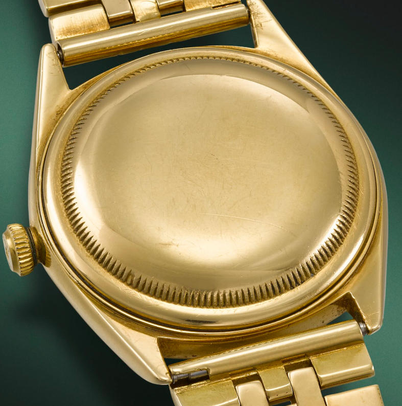 Early 1601 models had calibre 1565 (from manufacturer Aegler) with a 42-hour power reserve and a slow beat rate of 18,000vph. It didn’t feature a quickset date function, but did have improved shock resistance and was very reliable overall. It was perfectly adequate for early models, but the later calibre 1575 from 1965 increased the beat rate to 19,800vph and added hacking seconds in 1972. Typical for Rolex at the time, many movements were labelled as 1560 or 1570 as they used engraved plates for an entire family of movements instead of individualising calibre numbers.